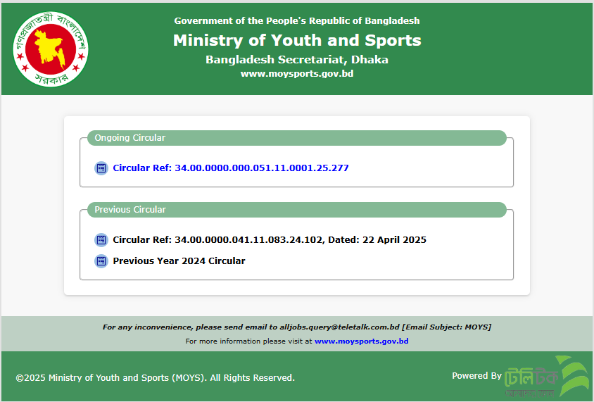 : http://moys.teletalk.com.bd/ (14 Nov 2025 )