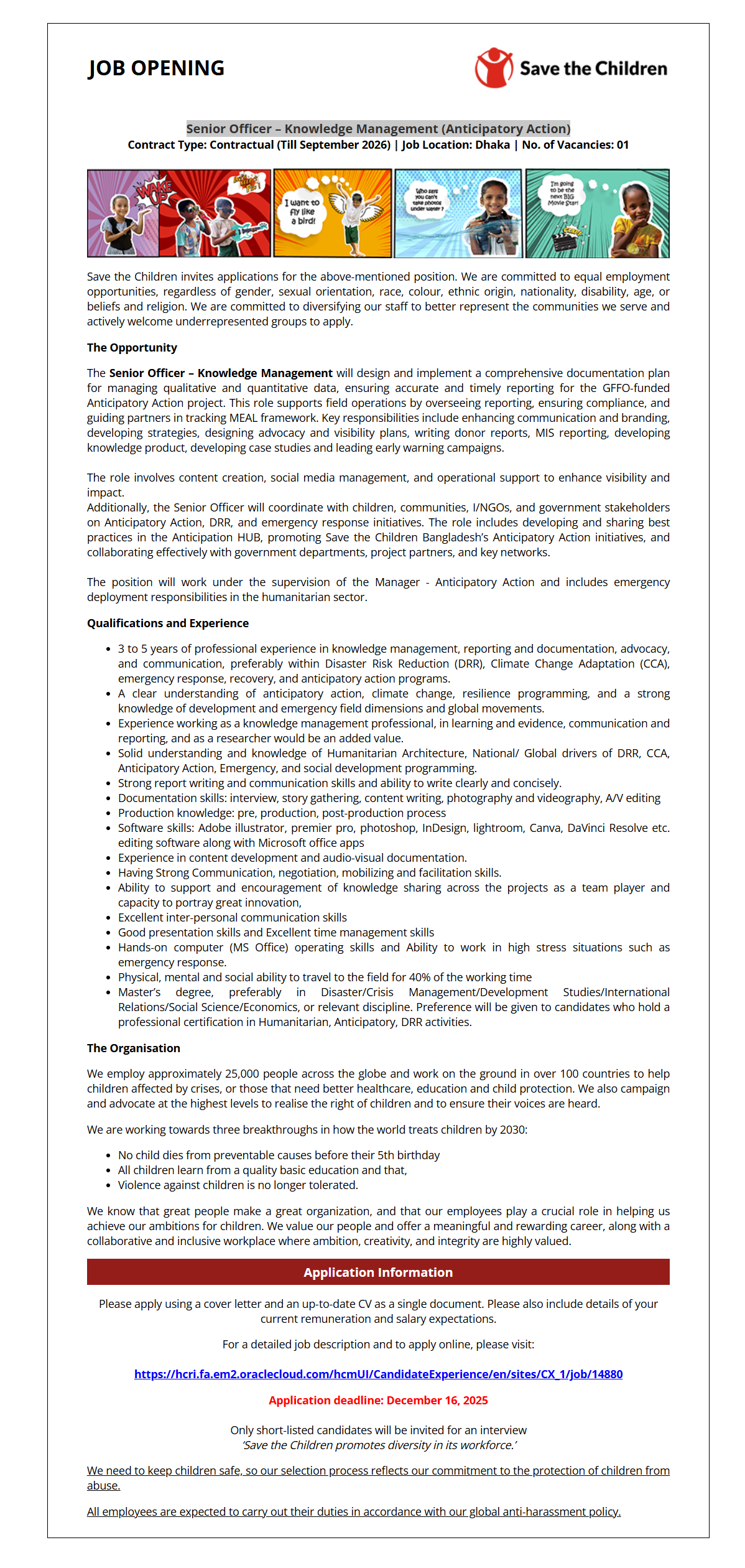 Senior Officer – Knowledge Management (Anticipatory Action)